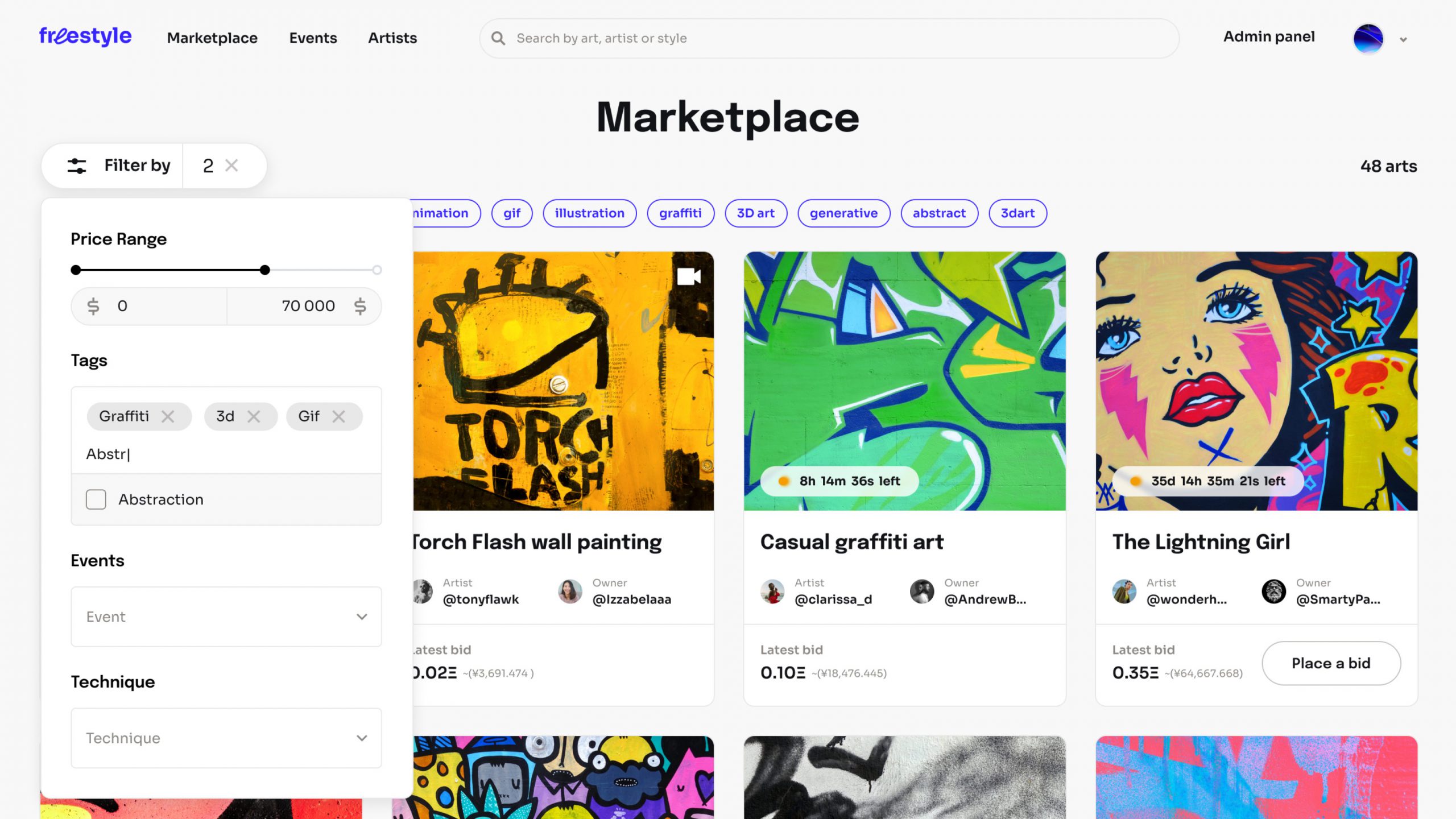 FreeStyle is well suited for offline events, which means that your clients can host parties, auctions, and other events where artists could create real art to be minted as NFTs.