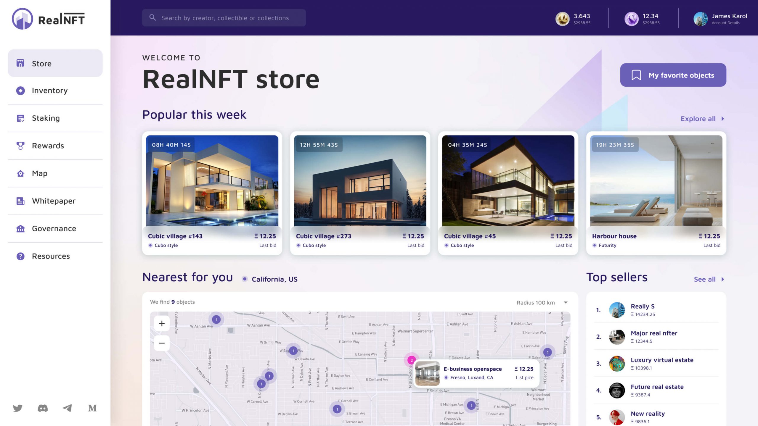 A digital marketplace for physical and (or) virtual real estate where users can trade and fractionally own property and stake their assets as NFTs.