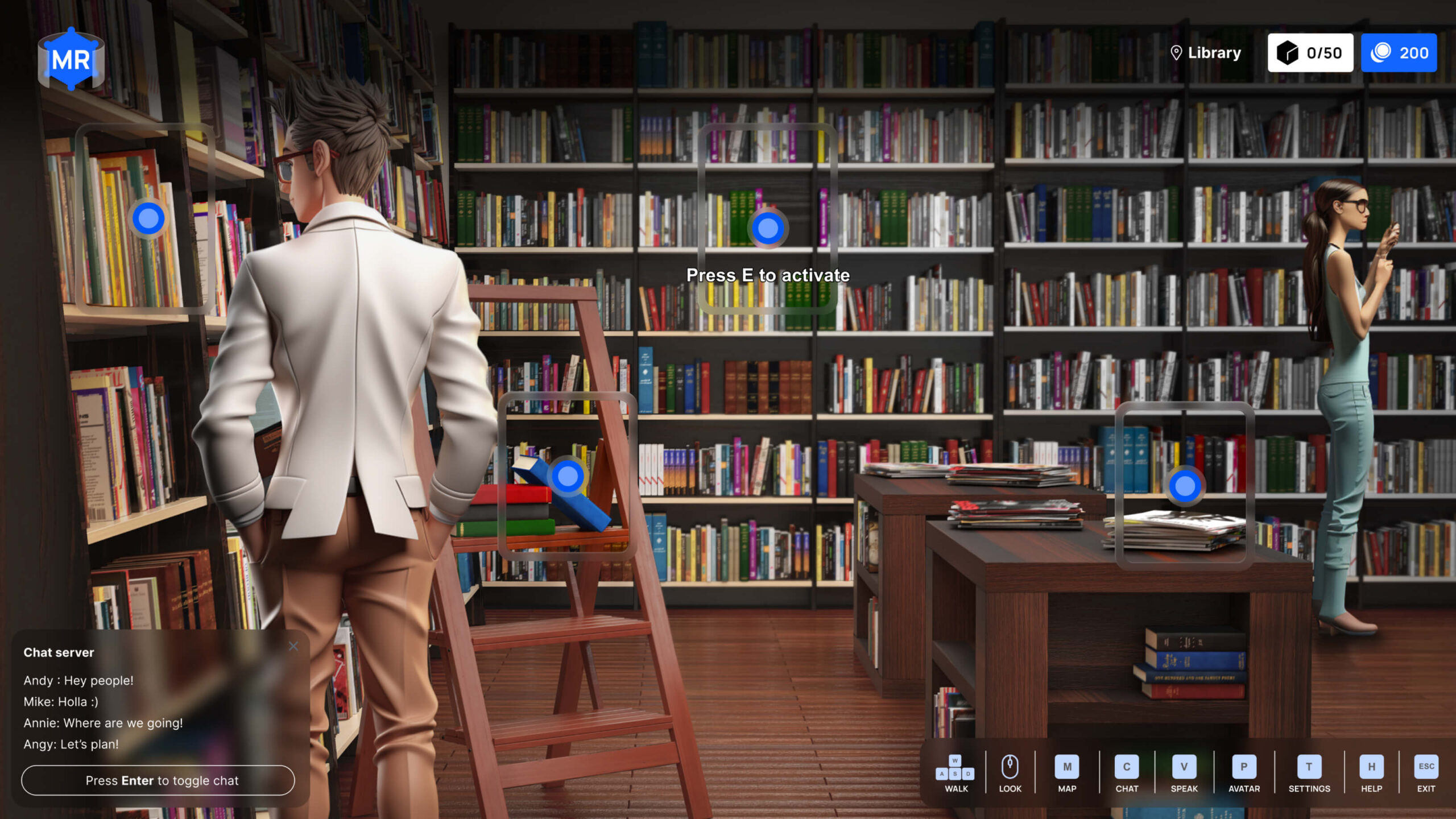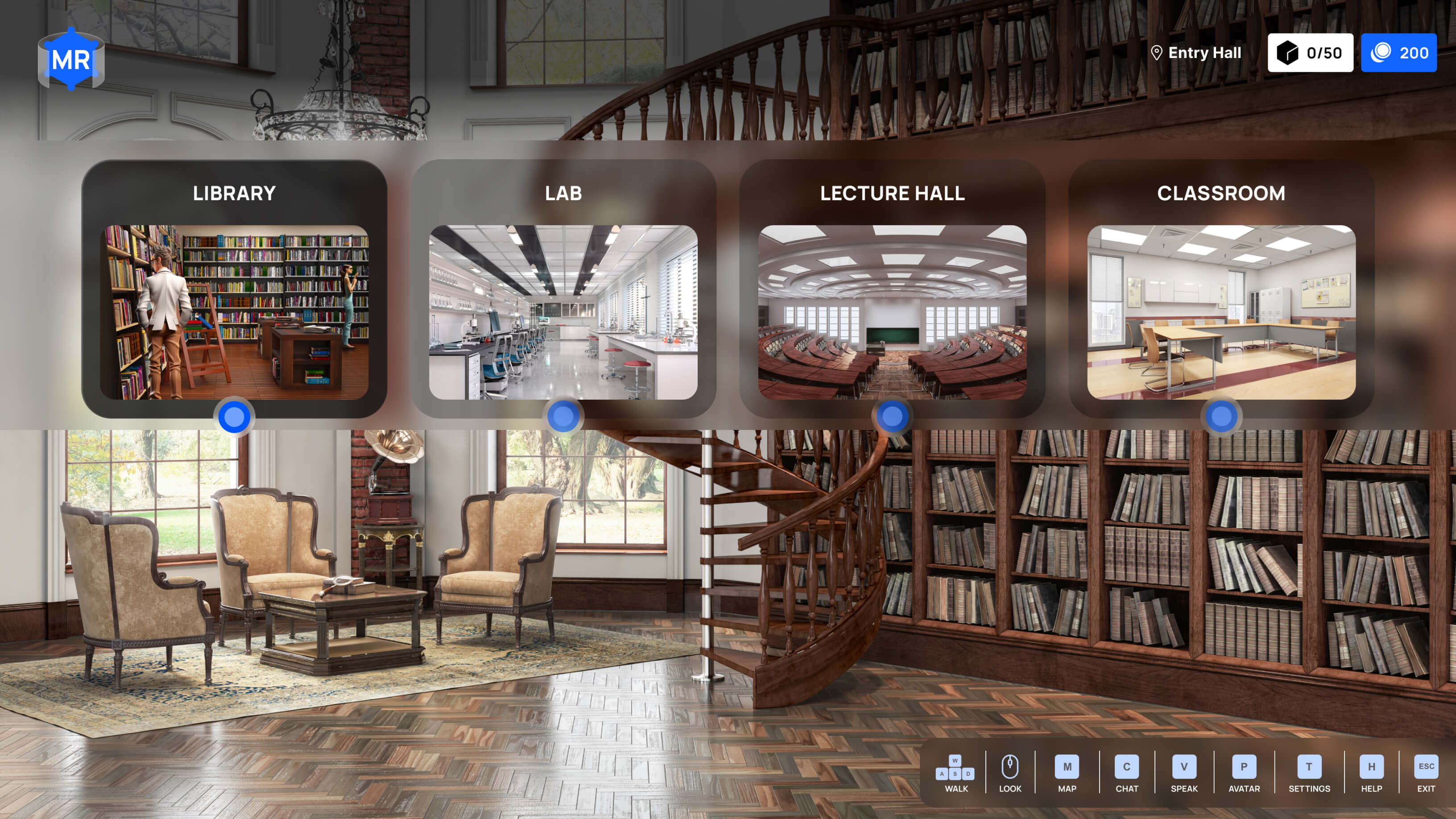 Make learning more entertaining with a virtual library where users could interact with the surroundings and learn history from 3D presentations and other interactive elements. Encourage them to learn by giving rewards for learning!